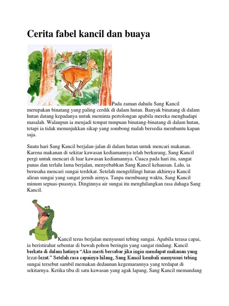 Serigala berbulu domba · 3. Cerita fabel ini menjadi sebuah karya sastra yang isinya cerita pendek dan singkat. Mulai dari cerita fabel singkat begambar, cerita fabel pendek, cerita fabel panjang, dan contoh . Pada jaman dahulu hiduplah dua binatang dihutan yang luas. Contoh cerita fabel pada zaman dahulu beserta strukturnya, singkat padat dan jelas. Berisi contoh cerita fabel pendek, cerita dongeng anak pengantar tidur terfavorit. Cerita fabel si kancil dan siput, & dongeng binatang lain. Cerita yang sarat akan pesan moral disebut . Seperti cerita kancil dan dongeng binatang lainnya. Pada bahasan kali ini kamu akan ditunjukkan contoh cerita fabel pendek dan singkat yang menarik. Kumpulan cerita fabel pendek terbaik untuk anak · 1. Kali ini kita akan membahas fabel dimana disini kita akan menjelaskan tentang pengertian dan 7 contoh teks cerita fabel pendek singkat dan . Berikut akan dibahas mengenai cerita fabel secara lengkap.