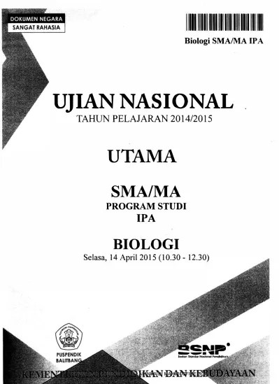 Soal un biologi ipa sma tahun 2014.